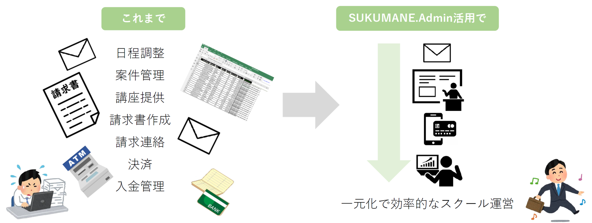 スクール運営の業務を繋げ、大幅な業務効率化を実現します。